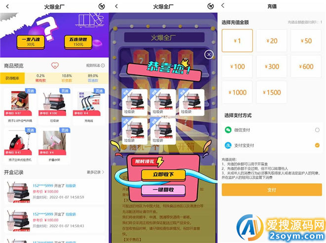 三级分销分润 自定义添加商品 设置自定义中奖概率!商品回收功能 例如60抽的商品,回收40价格 货!
