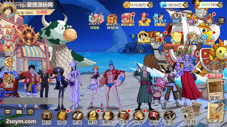 【新口袋航海王平台币内购自动部署版】卡牌回合手游+VM单机一键端+LINUX本地服务端+管理后台+代理后台+GM授权后台+安卓